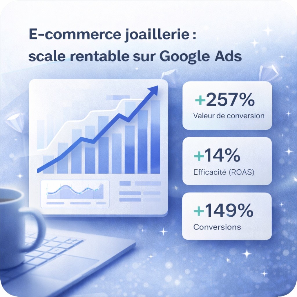 Une expertise Google Ads e-commerce, orientée marge et croissance.